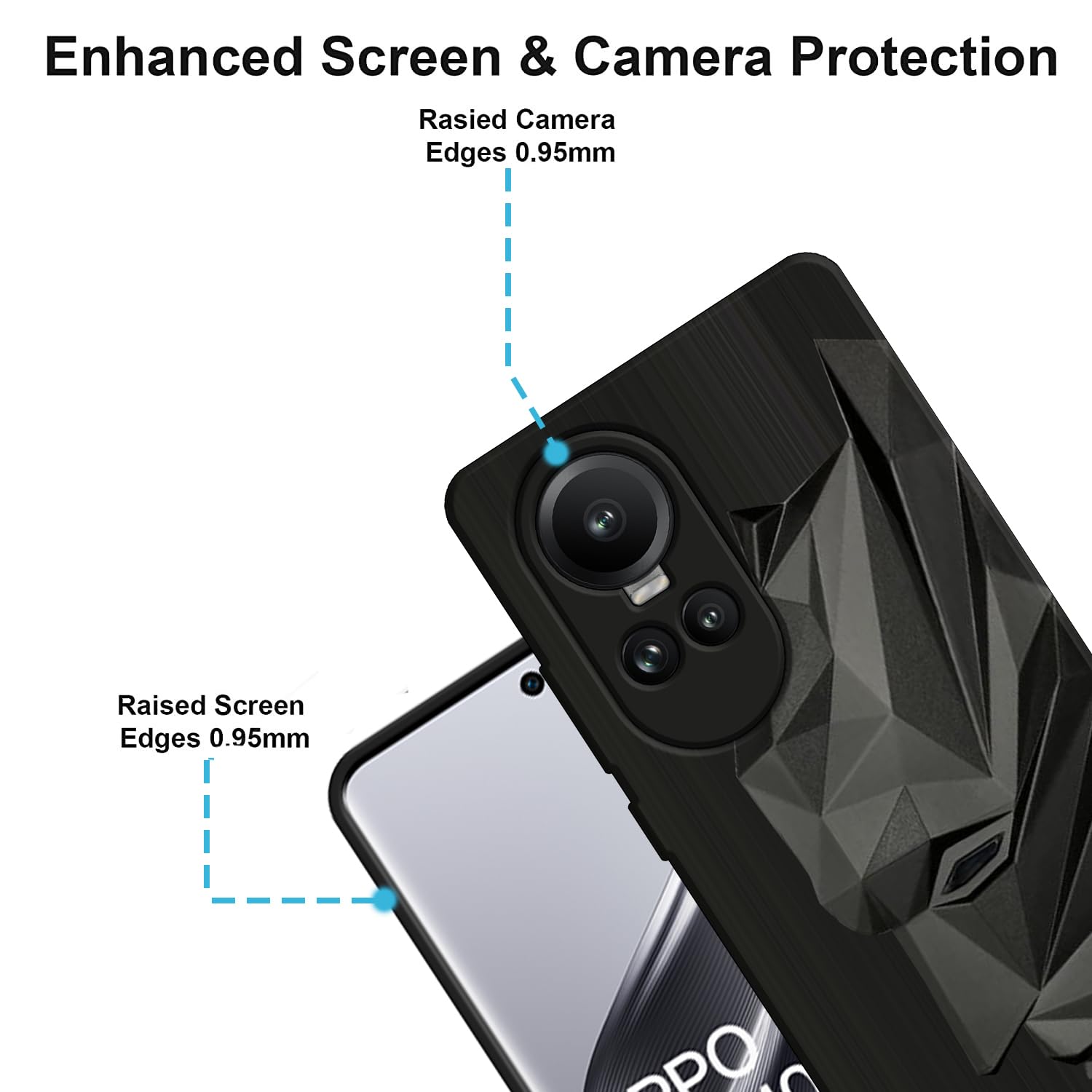 - DISPLAY AND CAMERA PROTECTION | The raised camera edge and the reinforced corners protect your phone camera and display against scratches when it rests face down on surfaces.