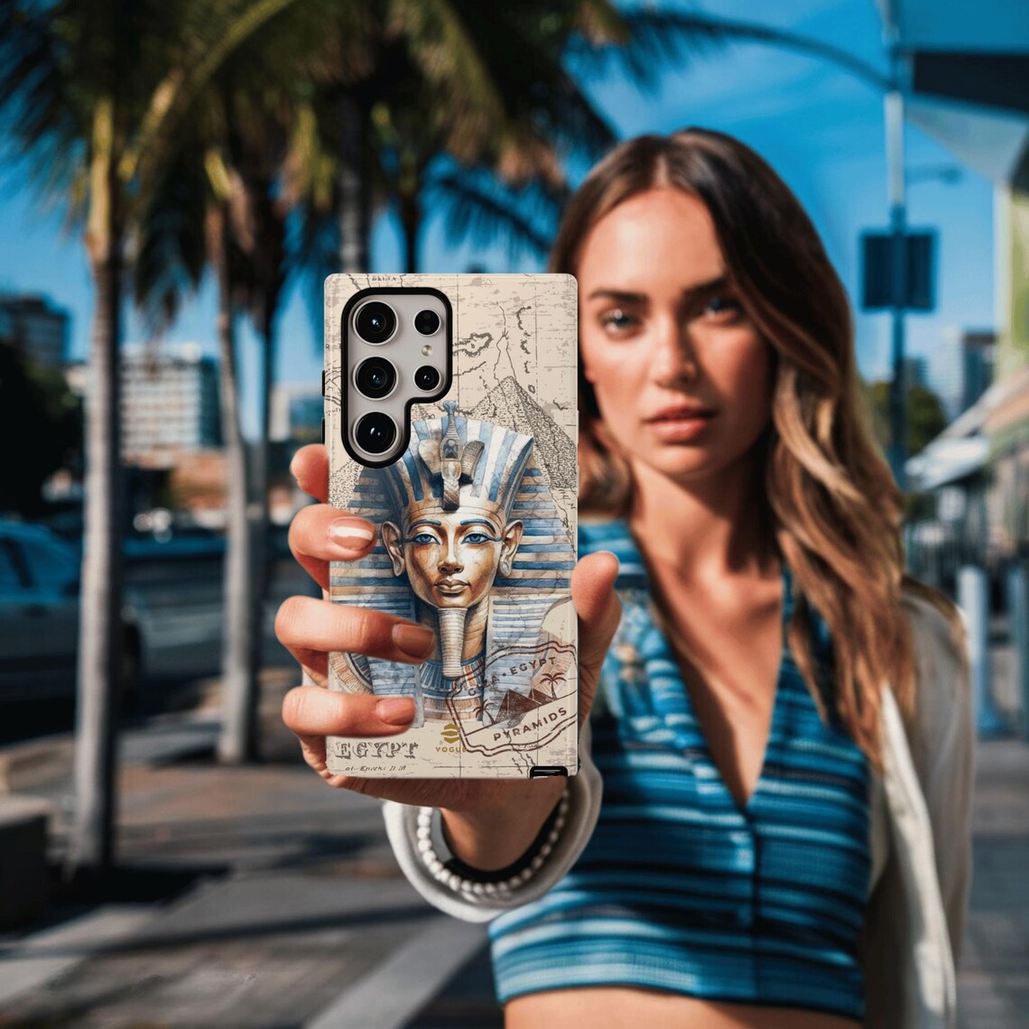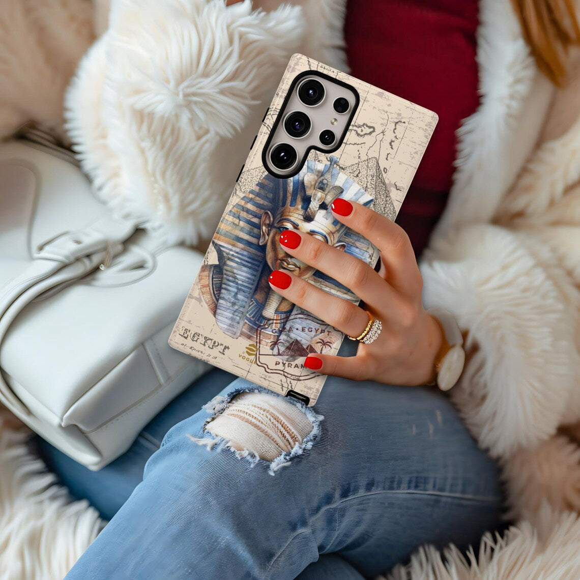 This Phone Case features an Egyptian Pharaoh design with pyramids and an old Egyptian map background. It gives off a mystical and historical vibe, making it perfect for history enthusiasts and those who appreciate ancient cultures. Ideal for people looking to protect their phone in style, this case is relevant for gifting during birthdays, holidays, and special occasions.