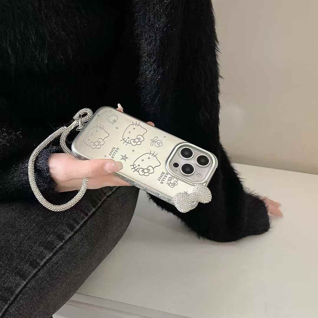 (Buy 1 Get 1 Free) Kitty With Bow Silicon Case For iPhone With Rope Holder