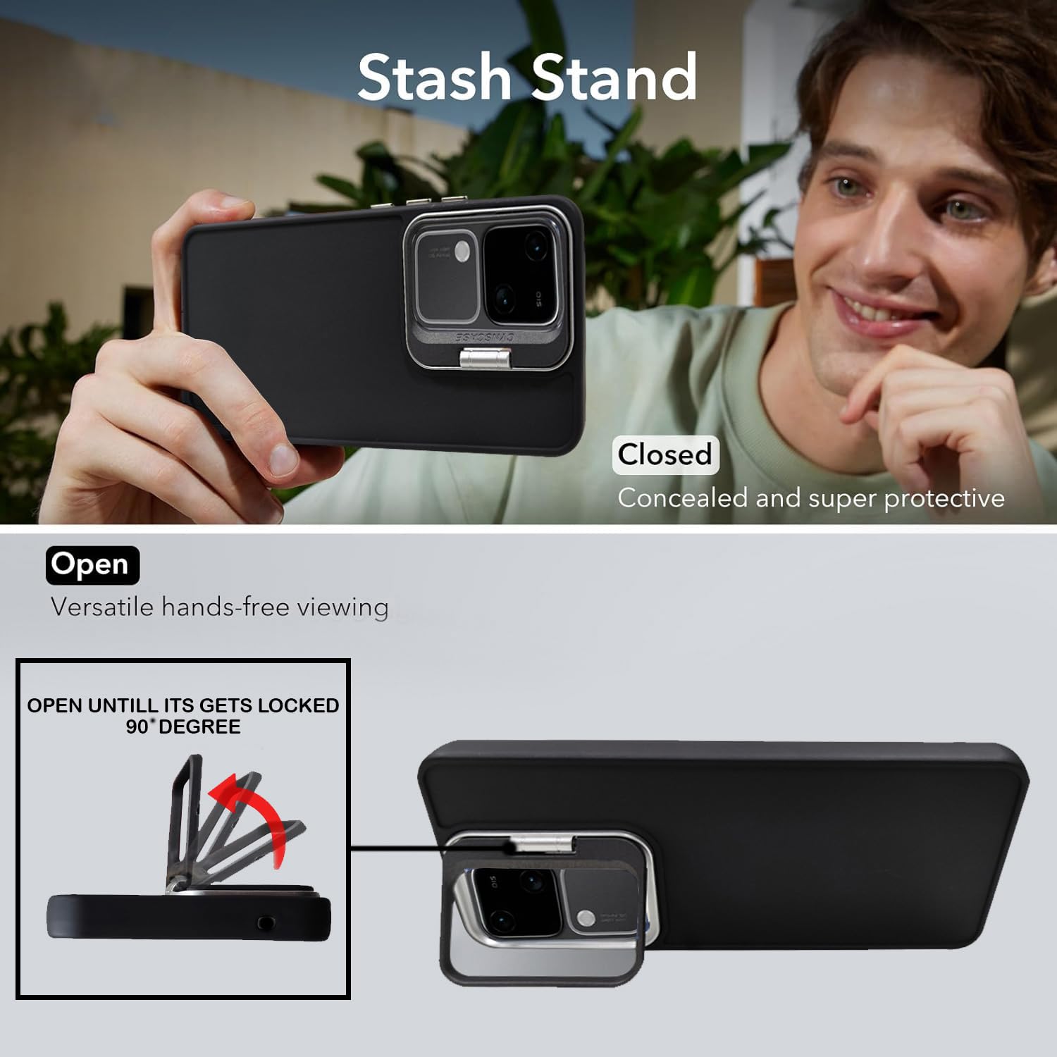 Silicone Back Cover Case for Vivo V30 / V30 Pro 5G with Camera Stand | Shockproof TPU | Stylish Protective Design | Slim Fit | Ultra Matte