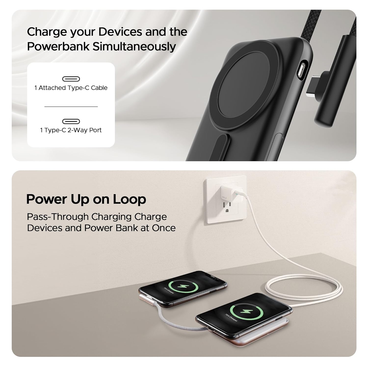 - Attached Type C PD Charging Cable: Includes a built-in Type C cable for hassle-free charging with an additional Type C 2-way port.