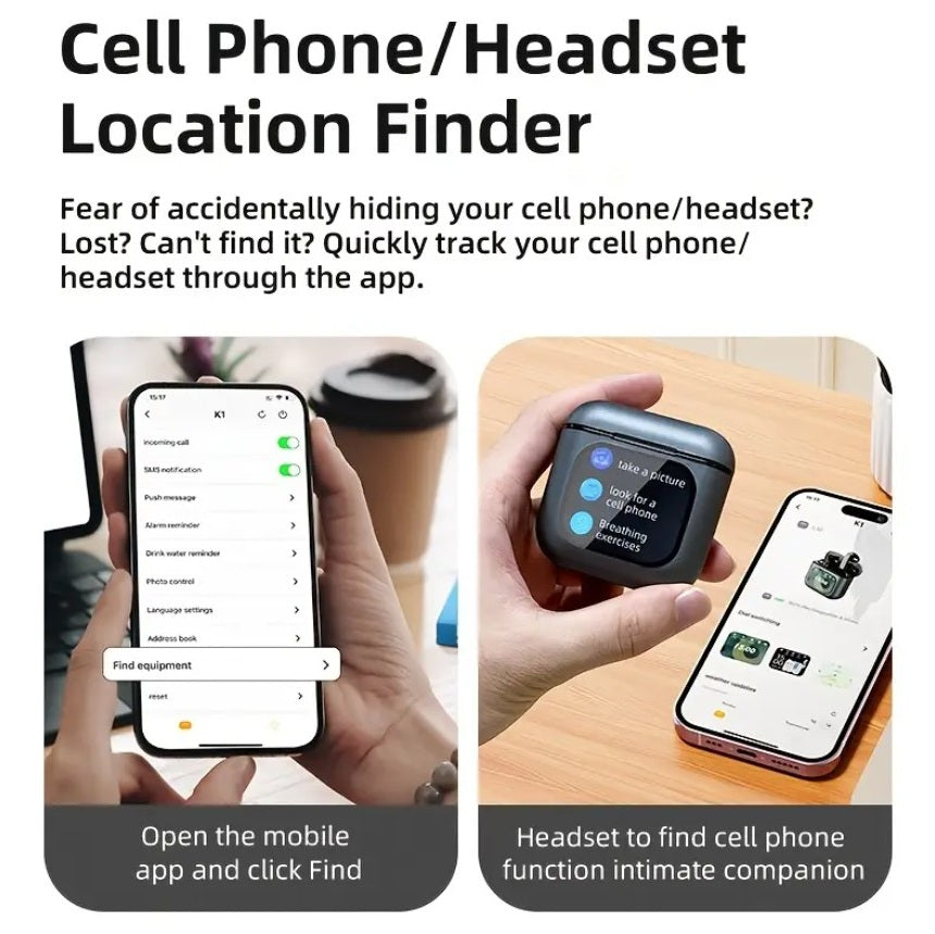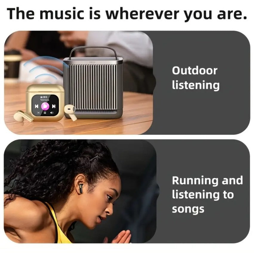 TWS Wireless Gaming Headset, LCD Touch Screen Display, ENC Intelligent Noise Cancellation Sleep Aid Headset, 40 Hours Long Battery Life, Control Music Player, Video Playback, Multi-functional High-quality Headset, Comes With Memory, Best Holiday Gift
